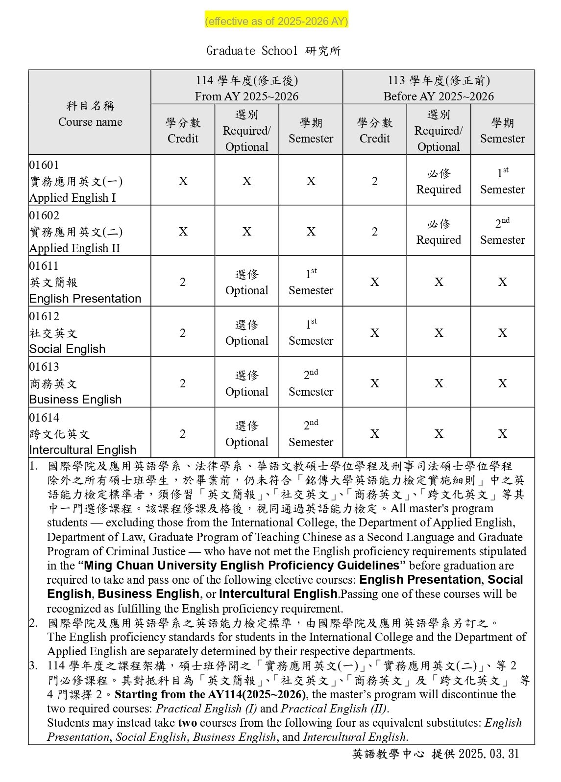 科目代號 Course Code |